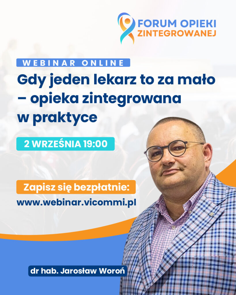Webinar jest zapowiedzią najważniejszej konferencji o opiece zintegrowanej w Polsce – I Forum Opieki Zintegrowanej(www.forumoz.pl), tworzonego przez dr hab. n. med. Jarosława Woronia oraz wybitnych ekspertów wielu dziedzin medycznych.